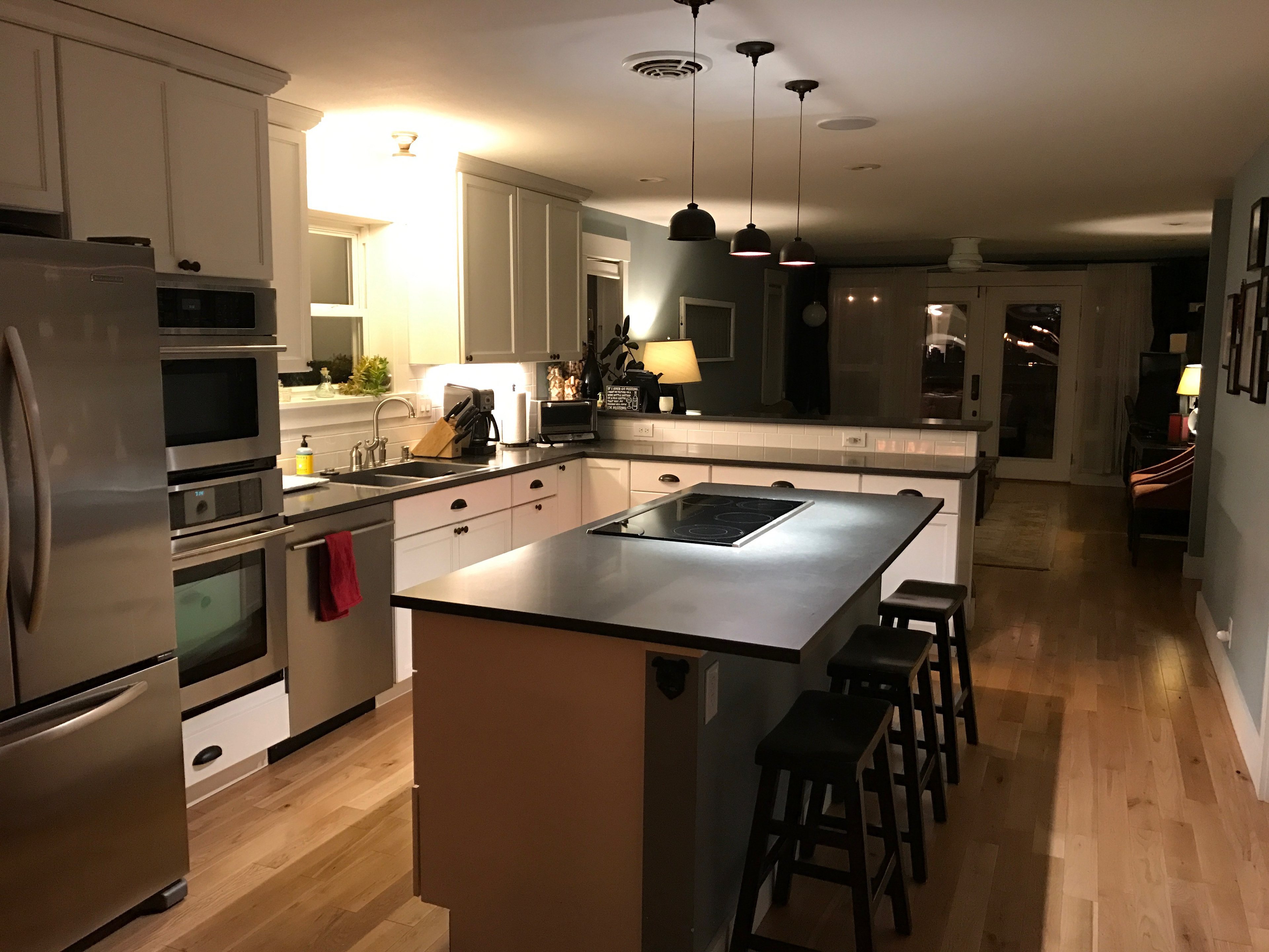 (Dining room table seats 8-13 and additional seating for up to 7 people at barstools in Kitchen. Kitchen has many necessary supplies including: stove, oven, microwave, toaster oven and dishwasher. Laundry room is right off of kitchen with full-size washer and dryer.)